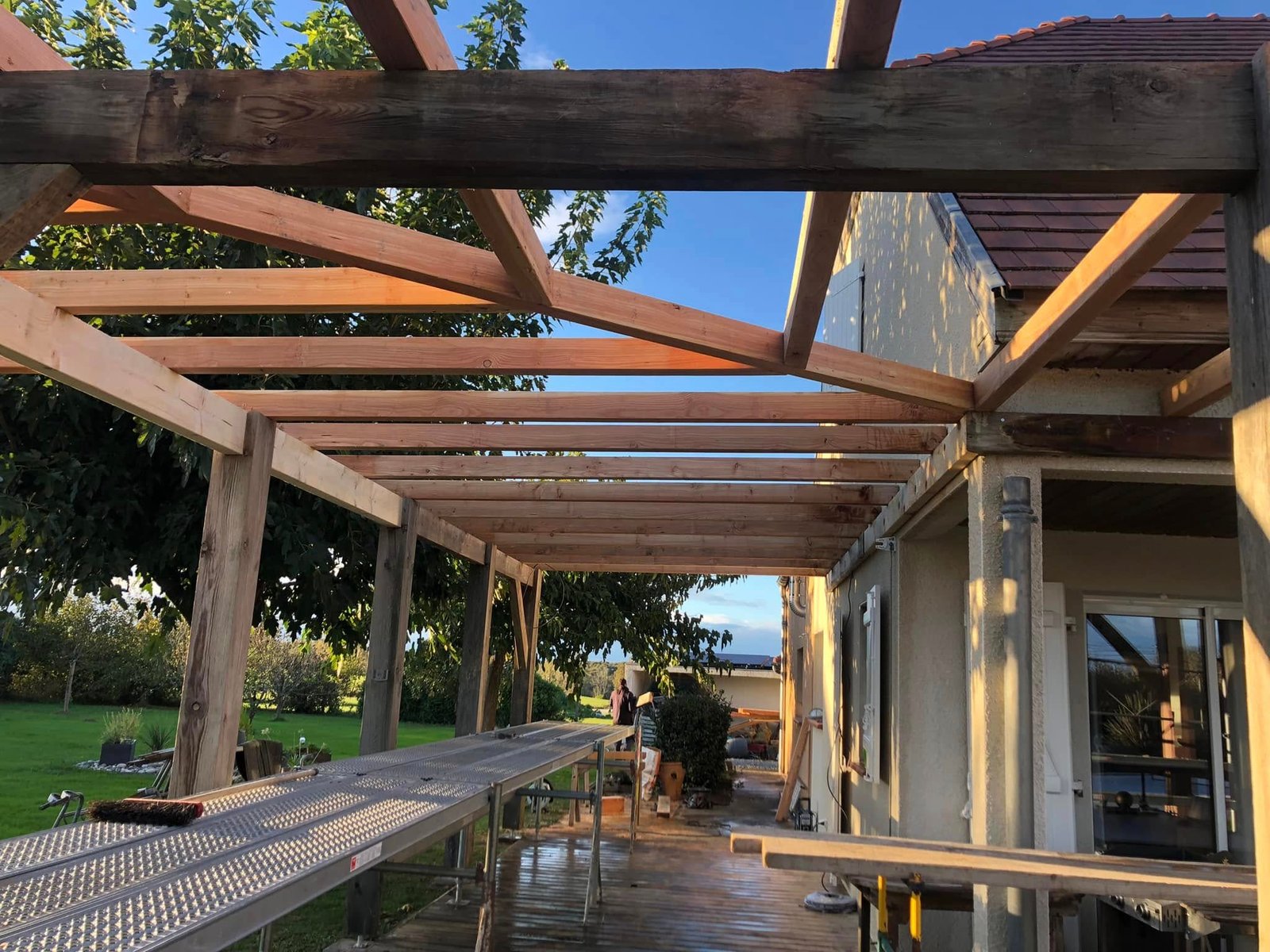 Nous concevons également des aménagements extérieurs sur mesure : carports, pergolas et terrasses en bois, pensés pour conjuguer durabilité, esthétique et confort.